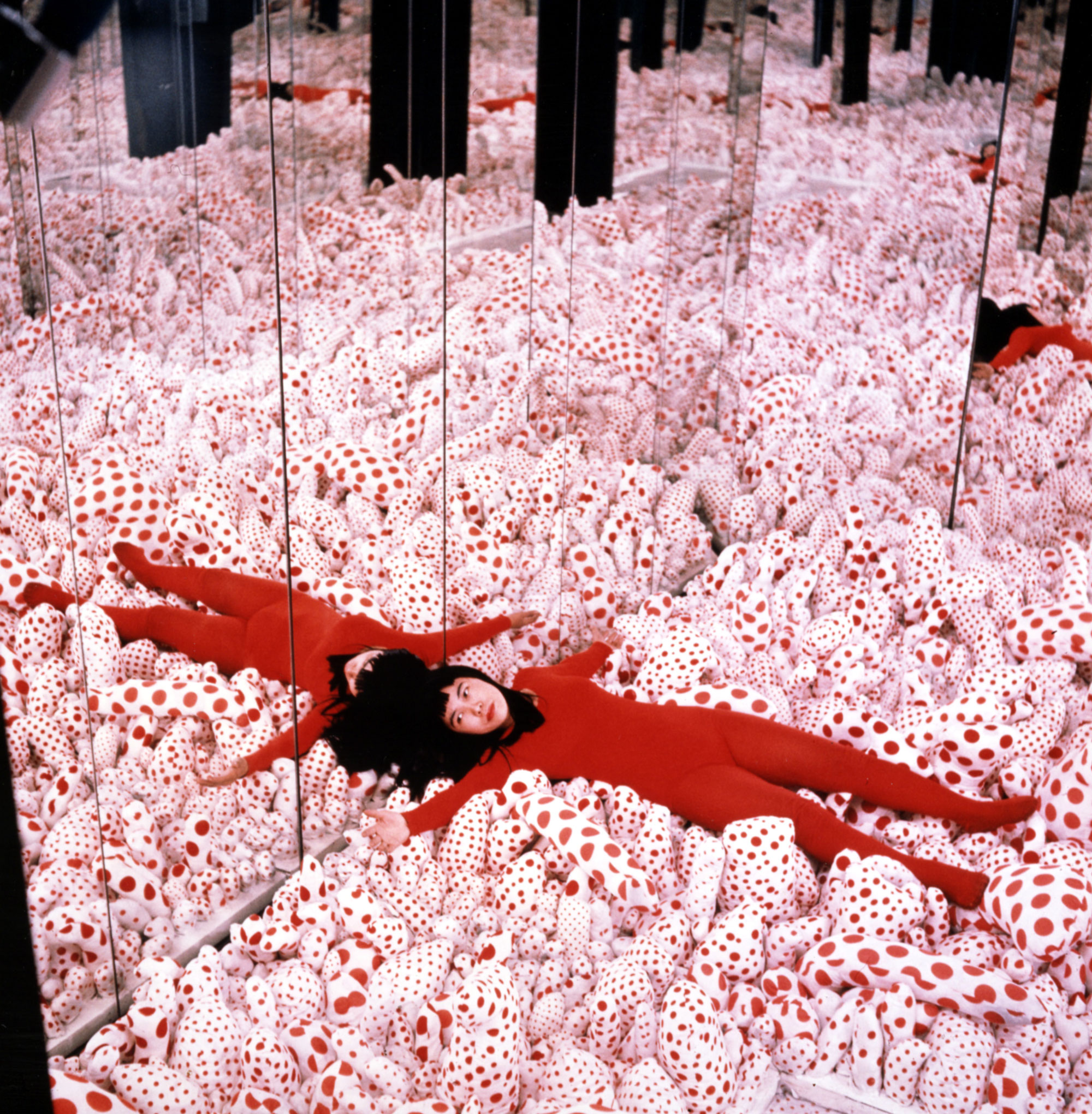 1973年帰国。新たに詩や小説の執筆にも取り組む。野外彫刻、大型インスタレーション、「インフィニティ・ミラー・ルーム」シリーズを制作。絵画「わが永遠の魂」シリーズ(2009–2021)は約900点に及び、2021年には新作絵画シリーズ「毎日愛について祈っている」の制作を開始。一貫して自然、愛、生と死を超えた無限をテーマに精力的な創作活動を続けている。